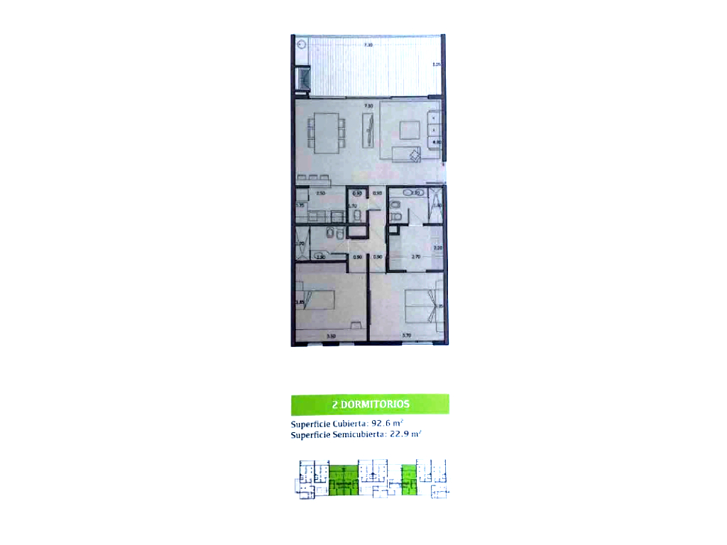 2 dormitorios con balcón superficie cubierta 115,50 m2